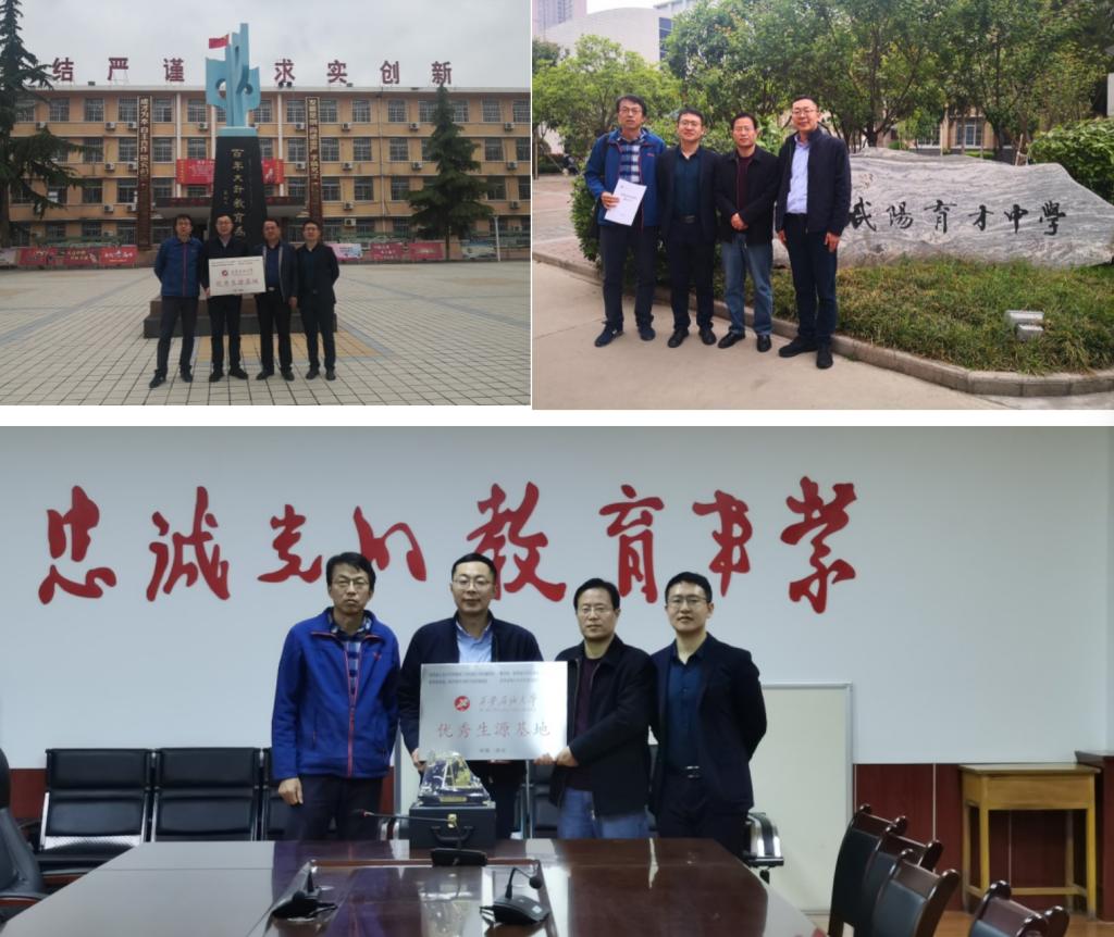 在乾縣二中,招生宣傳工作組代表與乾縣二中副校長(zhǎng)邱浩簽署了優(yōu)秀生源基地協(xié)議并授牌。教務(wù)處副處長(zhǎng)陳熙介紹了我校的發(fā)展歷程、學(xué)科門類、辦學(xué)特色師資力量、硬件設(shè)施及高考招生等情況,乾縣二中副校長(zhǎng)邱浩介紹了學(xué)校的發(fā)展歷程、辦學(xué)特色、教學(xué)成果和社會(huì)影響等,希望能以此次優(yōu)秀生源基地授牌為契機(jī),繼續(xù)加強(qiáng)聯(lián)系、合作共贏,雙方圍繞高考志愿填報(bào)輔導(dǎo)、職業(yè)生涯規(guī)劃等合作開展了深入交流。在咸陽(yáng)育才中學(xué),招生宣傳工作組代表與咸陽(yáng)育才中學(xué)副校長(zhǎng)楊雄英簽署了優(yōu)秀生源基地協(xié)議并授牌,經(jīng)濟(jì)管理學(xué)院副院長(zhǎng)吳勛介紹了我校辦學(xué)特色與校園石油文化建設(shè)情況,雙方圍繞中學(xué)研學(xué)活動(dòng)、高考志愿填報(bào)輔導(dǎo)等方面合作達(dá)成了初步意向。