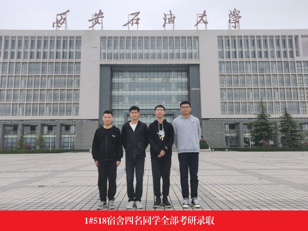 在諸多優(yōu)秀學(xué)子中,1#518宿舍的四位同學(xué)全部被考研錄取,格外引人注目。該宿舍劉迎澳、劉峰同學(xué)被西安電子科技大學(xué)錄取,陳偉同學(xué)被華南師范大學(xué)錄取,萬希智同學(xué)被西安工業(yè)大學(xué)錄取,宿舍四人全員上岸,“學(xué)霸”宿舍,實至名歸。1#518的宿舍四名同學(xué)在日常學(xué)習(xí)中刻苦努力,積極參與學(xué)術(shù)競賽,多次獲得國家獎學(xué)金、品學(xué)兼優(yōu)獎學(xué)金等榮譽。在考研期間互相監(jiān)督,彼此鼓勵,每天晚上在宿舍分享今日備考遇到的問題或發(fā)現(xiàn)的知識漏洞。最終,一路相伴,“研”途圓夢。