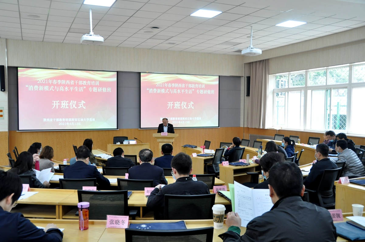4月13日上午,2021年春季陜西省干部教育培訓(xùn)“消費新模式與高水平生活”專題研修班在我校培訓(xùn)中心順利開班。繼續(xù)教育學(xué)院副院長吳民生參加開班儀式,并簡要介紹了我校發(fā)展沿革及培訓(xùn)基地工作開展情況。