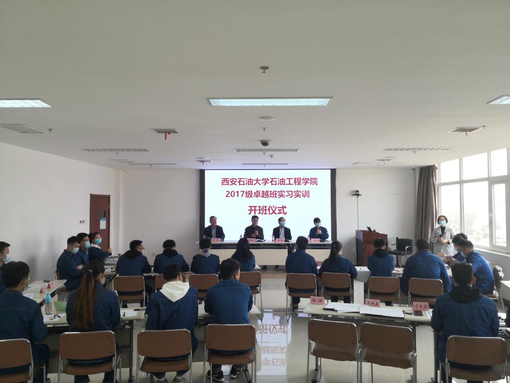 根據(jù)教育部工程教育認證和學(xué)校人才培養(yǎng)方案要求,317日下午2點,學(xué)院在西安市高陵區(qū)長慶油田西安油氣綜合實訓(xùn)基地成功舉辦西安石油大學(xué)石油工程學(xué)院2017級卓越班實習(xí)實訓(xùn)開班儀式,本次儀式由長慶油田第一采油廠廠長助理唐玉龍、學(xué)院副院長趙金省教授、實習(xí)指導(dǎo)教師王金龍博士、2017級輔導(dǎo)員孫浩哲和2017級石油工程專業(yè)卓越班同學(xué)共計40余人參加。本次儀式由我校校友、長慶油田西安油氣綜合實訓(xùn)基地黨支部書記胡霄主持。