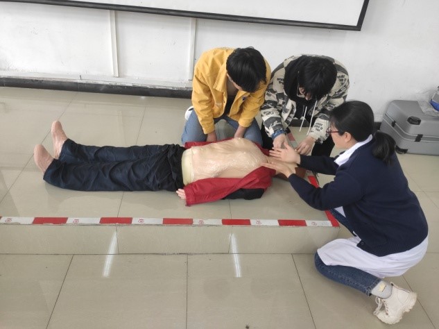 現(xiàn)場(chǎng)同學(xué)們學(xué)習(xí)興趣濃厚,氛圍活躍,操作過(guò)程中不斷進(jìn)行提問(wèn)和交流。同學(xué)們兩人一組,在兩位專業(yè)醫(yī)療人員的指導(dǎo)下,迅速掌握了操作要點(diǎn),熟練的學(xué)會(huì)了整個(gè)心肺復(fù)蘇的操作流程,贏得了大家的掌聲。