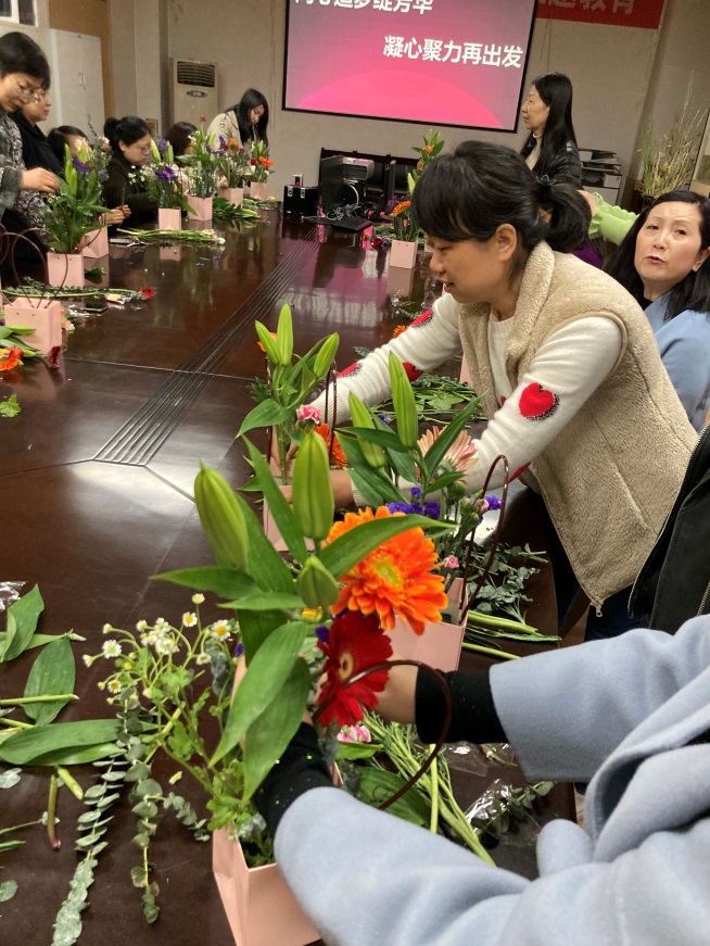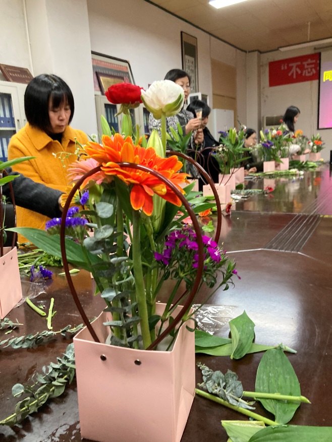 三月,春意漸濃、萬(wàn)物復(fù)蘇。為進(jìn)一步激發(fā)女教工的工作及生活熱情,充分展示我館女教工的優(yōu)雅風(fēng)采,圖書館于三八國(guó)際婦女節(jié)來(lái)臨之際,開(kāi)展了以“同心追夢(mèng)綻芳華,凝心聚力再出發(fā)”為主題的“女神節(jié)”慶?;顒?dòng)。近30位女教工共同體驗(yàn)了高雅的插花藝術(shù),用巧手制造美麗、用鮮花裝扮節(jié)日。
