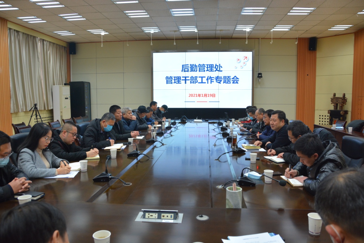 1月19日上午,后勤管理處召開科以上管理干部工作專題會議,回顧2020年工作,安排部署2021年重點工作。蘇文甫副校長與會,并親切寄語包括新任命的科級在內的后勤管理干部。