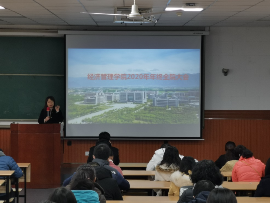 院長王君萍作2020年學院財務報告和工作報告。主要從財務、科研、教學、學科評估、人才引進、學生工作、扶貧與工會工作、校友工作等方面,詳細介紹了經濟管理學院2020年所取得的成績和存在的不足,并提出新一年的奮斗目標。啟動了學院全員支持就業(yè)行動方案,方案正在調研和起草過程中,擬通過全院全員參與、與學校各職能處室進一步積極聯(lián)合,共同支持學院的就業(yè)工作,不斷提升就業(yè)質量。