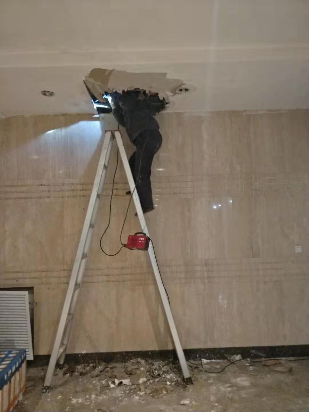 就在雁塔校區(qū)24小時(shí)連軸轉(zhuǎn)的搶修期間, 當(dāng)天下午5點(diǎn)左右,鄠邑校區(qū)圖書館又傳來緊急情況:該樓一層大廳供暖管道發(fā)生爆管。由于此處破損管道都在大廳吊頂內(nèi),維修難度較大,后勤又緊急安排人員進(jìn)行高處作業(yè):經(jīng)現(xiàn)場周密組織和人員密切配合,到了當(dāng)天晚間11點(diǎn),一身泥物、滿身疲憊的后勤維修人員又完成了管道更換,隨后圖書館正常供暖恢復(fù)。