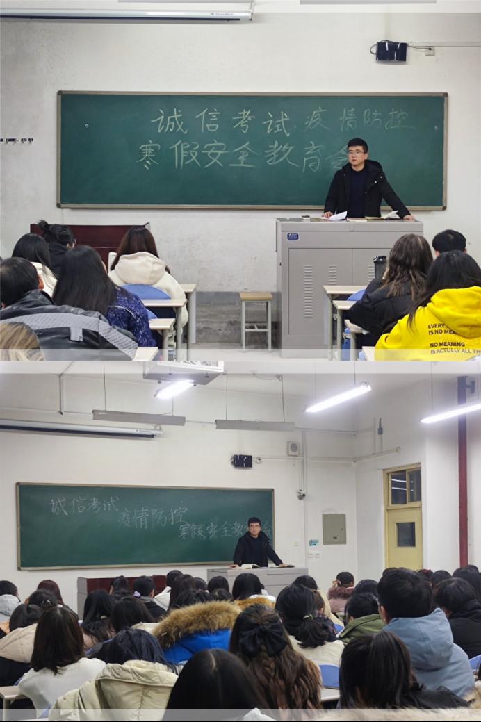 為認(rèn)真貫徹落實(shí)學(xué)校對(duì)誠(chéng)信考試、疫情防控和寒假安全教育相關(guān)通知的要求,外國(guó)語(yǔ)學(xué)院根據(jù)近期疫情防控新要求,在結(jié)合學(xué)院實(shí)際的情況下分別以線上、線下和分班、分專業(yè)的形式在各年級(jí)召開誠(chéng)信考試、疫情防控和寒假安全教育大會(huì)。2017級(jí)、2019級(jí)輔導(dǎo)員陶李,2018級(jí)、2020級(jí)輔導(dǎo)員陳浩分別主持召開所帶年級(jí)的教育大會(huì)。