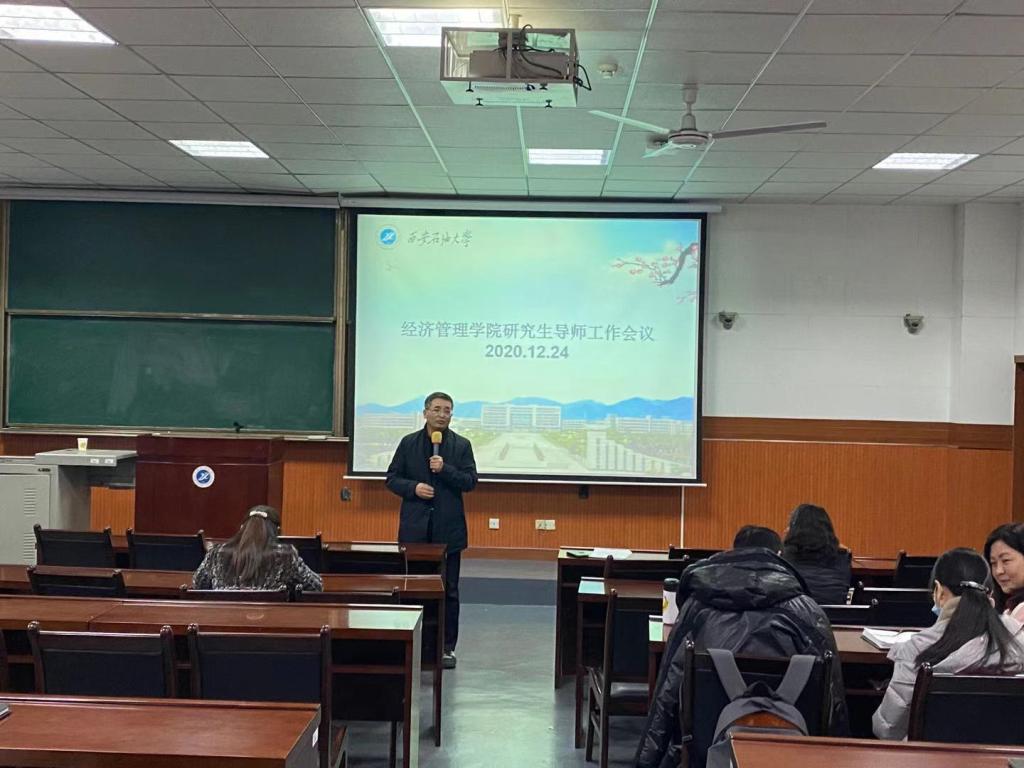 學術報告結束后,經(jīng)濟管理學院召開了碩士研究生導師工作會議。經(jīng)濟管理學院院長王君萍教授首先對研究生導師在研究生培養(yǎng)過程中的責任進行了強調(diào),她指出應充分發(fā)揮導師在研究生教書育人中的第一責任人作用,在切實加強研究生思想政治教育工作的同時,也要充分保證研究生的培養(yǎng)質(zhì)量。導師應在學生開題報告、中期檢查、畢業(yè)答辯的培養(yǎng)全過程發(fā)揮作用,防止把“相應責任”泛化理解、片面化認定、極端化執(zhí)行。