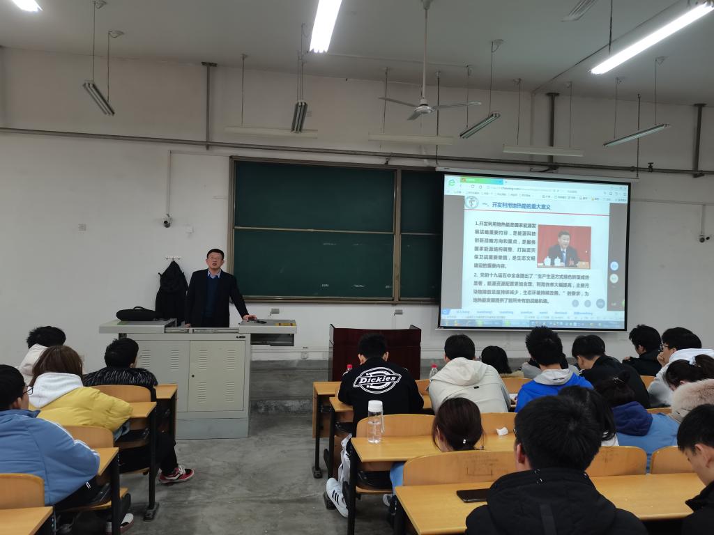 12月22日下午4時(shí),石油工程學(xué)院于鄠邑校區(qū)B321教室舉辦石工論壇系列講座——《陜西省地?zé)崮荛_(kāi)發(fā)利用進(jìn)展》,特別邀請(qǐng)到陜西省水工環(huán)地質(zhì)調(diào)查中心黨委書(shū)記鈔中東老師主講。本次講座由新能源科學(xué)與工程專(zhuān)業(yè)系主任楊昌華教授主持,學(xué)院黨委副書(shū)記張建高、能科系副主任余華貴、能科系教師羅向榮、高千、王洋及全體能科專(zhuān)業(yè)120余名學(xué)生參加此次講座。