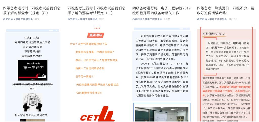 四是學(xué)院通過微信公眾號(hào)、易班等新媒體平臺(tái),先后推送了4期《四級(jí)備考進(jìn)行時(shí)—四級(jí)考試前我們必須了解的那些考試規(guī)定》網(wǎng)絡(luò)推送,分別宣傳介紹了《普通高等學(xué)校學(xué)生管理規(guī)定》《國家教育考試違規(guī)處理辦法(節(jié)錄)》《CET考生守則》《關(guān)于新刑法修正案中考試違紀(jì)作弊行為的有關(guān)說明》 ,幫助學(xué)生詳細(xì)了解學(xué)校及國家誠信考試相關(guān)要求及政策。
