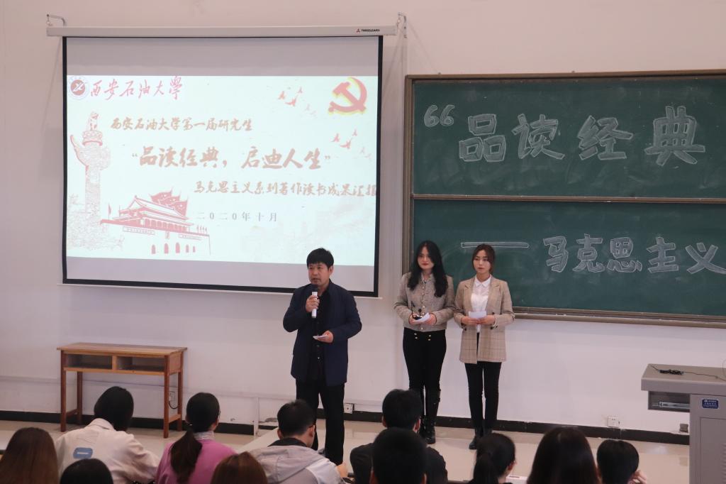思想喻花,實踐謂火。以馬克思主義“思想之花”點燃中國共產(chǎn)黨領(lǐng)導(dǎo)的革命、建設(shè)、改革“實踐之火”的盛大奇觀,在近百年中華大地上輝煌上演,構(gòu)成人類發(fā)展史上精彩奪目的篇章。為配合《中國特色社會主義理論與實踐研究》的課堂講授,使得本門課程學習理論與聯(lián)系實際相結(jié)合,弘揚中華優(yōu)秀傳統(tǒng)文化和社會主義先進文化,指引當代大學生樹立正確的世界觀,人生觀與價值觀,2020年10月-11月,研究生院和馬克思主義學院成功舉辦了首屆研究生“品讀經(jīng)典,啟迪人生”——馬克思主義經(jīng)典著作賞析報告會。