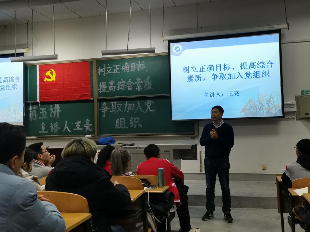 首先,王亮老師從提高思想認(rèn)識方面,指出學(xué)員們要通過樹立正確的思想認(rèn)識,達到思想上入黨,通過培養(yǎng)明確的行為傾向,達到行動上入黨,他認(rèn)為,身為大學(xué)生入黨積極分子,要做到不斷學(xué)習(xí),充實自己;加強自信,樂觀拼搏;平衡心態(tài),合理規(guī)劃;深化責(zé)任,奉獻社會。隨后,王亮老師從樹立正確的目標(biāo),對學(xué)員們提出了明確的要求,他表示學(xué)員們要明確自己的興趣、能力和人格,及時思考目標(biāo)定位,實現(xiàn)角色轉(zhuǎn)換,及時完成認(rèn)同過程,放大自己的格局;最后,王亮老師鼓勵學(xué)員們要將目標(biāo)形象化,用心感受目標(biāo)實現(xiàn)過程,用積極的心態(tài)戰(zhàn)勝畏難的情緒,以自己的實際行動,爭取早日加入黨組織。
