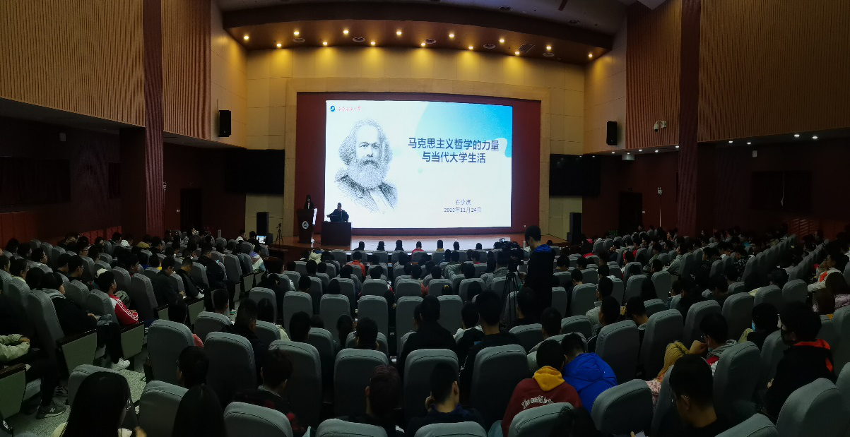 本次講座主要有兩部分,即馬克思主義哲學在現(xiàn)當代社會中的價值及其與如何指導當代大學生活。石少虎老師首先拋出兩個問題,即“何為哲學”和“哲學又為何”,又以幽默風趣的語言講述了季羨林先生的故事和“三人行必有我?guī)煛钡睦?,給出自己的解答——哲學是萬物的本源,是智慧,是樂趣。通過問題和事例引發(fā)大家的思考,進而引入本次講座的第一個主題——馬克思主義哲學,石老師向同學們介紹了三個方面的內(nèi)容:馬克思主義當代價值的理論挑戰(zhàn)、馬克思主義的理論闡釋、堅定馬克思主義的理論自信,通過對上述論點深入淺出地精彩講解,使得同學們對馬克思主義哲學當代價值的認識更加明晰。隨后,石老師引入“馬克思主義哲學與大學生活”這一核心觀點,他認為,大學的生活與責任即是要學會辯證地看待問題、要敢于人先大膽創(chuàng)新。在介紹完馬克思主義哲學與大學的聯(lián)系之后,石老師用同學們樂于接受的語言方式講述了歷史上的名人事例,并對比古今中外思想成果,探尋了人類思想發(fā)展的脈絡(luò),更新了同學們對馬克思主義思想的高度,更是讓同學們對于馬克思主義在未來中國發(fā)展產(chǎn)生了更美好的憧憬與強烈的自信。