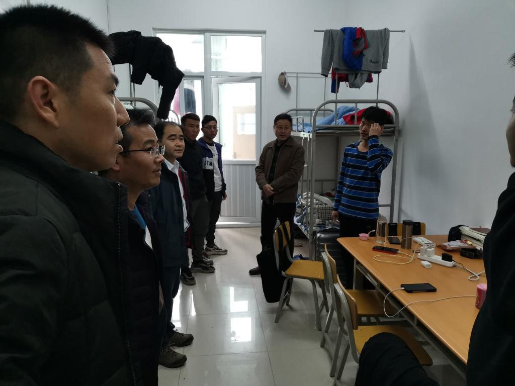 高教研究與評(píng)估中心、教務(wù)處、實(shí)驗(yàn)室管理處、地球科學(xué)與工程學(xué)院相關(guān)負(fù)責(zé)人與長(zhǎng)安大學(xué)梁山基地負(fù)責(zé)人進(jìn)行了交談,詳細(xì)咨詢了基地的接待能力、實(shí)習(xí)時(shí)間安排、交通、安全等細(xì)節(jié),并考察了長(zhǎng)安大學(xué)梁山實(shí)習(xí)基地內(nèi)部的學(xué)生宿舍、食堂和教室條件。