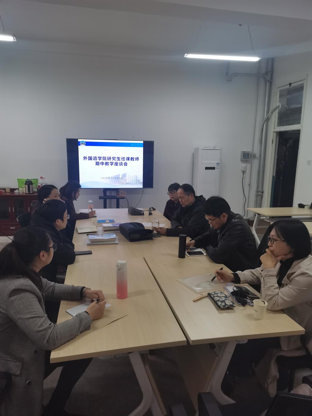 與會教師圍繞教學中遇到的問題、授課內(nèi)容以及教學經(jīng)驗交流等方面展開了熱烈的討論。于艷英院長對研究生課程教學的開展及教學管理提出了要求,指出碩士研究生任課教師在選擇教材及授課的過程中一定要堅持正確的立場,在講授國外思想文化的同時也要注重培養(yǎng)學生的愛國主義情懷,要把課程思政融入到日常教學中。劉輝副院長總結(jié)強調(diào)任課教師在圍繞課程教學內(nèi)容進行學術(shù)探討的同時,要加強責任意識,貫徹立德樹人,堅持正確的價值觀導向,同時應嚴格執(zhí)行考勤及請銷假制度,確保研究生教學管理的規(guī)范性。