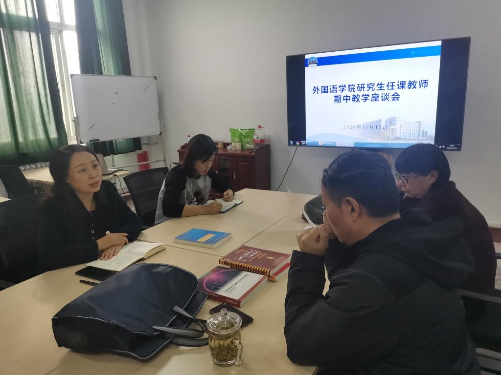 11月13日下午兩點半,外國語學院在雁塔校區(qū)1號教學樓727舉行研究生任課教師期中教學座談會。會議由劉輝副院長主持,院長于艷英、教授委員會主任袁森、翻譯碩士全體任課教師及研究生公外任課教師代表參加了此次會議。