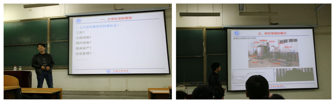 石油科技學(xué)社社長王志超主持了此次活動(dòng),石工院王海洋博士分享了他在西石大八年的學(xué)習(xí)生活。此次活動(dòng),旨在通過借鑒優(yōu)秀學(xué)生的學(xué)習(xí)經(jīng)驗(yàn)和生活經(jīng)歷,搭建起本科生與碩博研究生學(xué)習(xí)交流平臺(tái),推動(dòng)同學(xué)積極參加創(chuàng)新活動(dòng),營造石油科技學(xué)社內(nèi)部良好的學(xué)習(xí)氛圍。