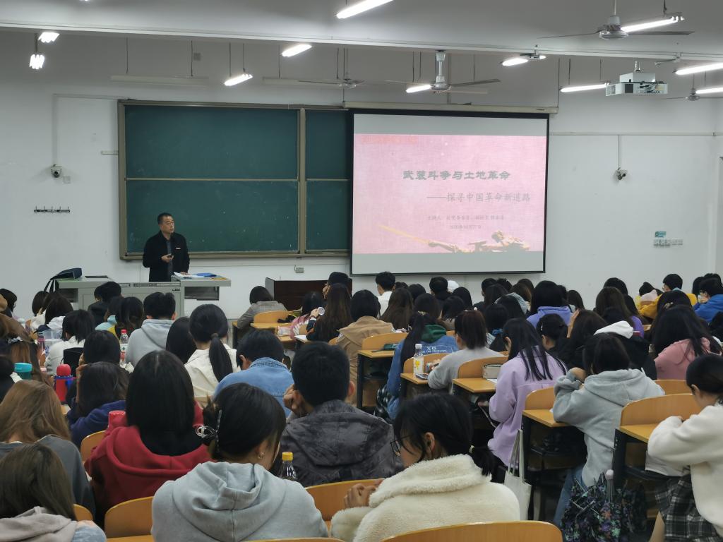 1027日晚,程永清副校長以《武裝斗爭與土地革命——探索中國革命新道路》為題,在鄠邑校區(qū)教學(xué)B區(qū)114教室為人文學(xué)院教師、學(xué)生黨員共260余人講授黨史專題講座第二講。