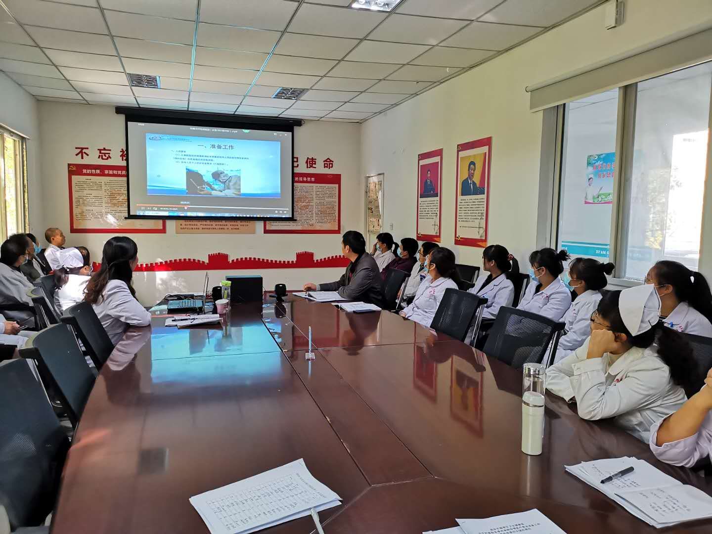 一、傳達(dá)會(huì)議精神和理論知識(shí)培訓(xùn),李明珠副院長(zhǎng)傳達(dá)了1020日晚上雁塔區(qū)衛(wèi)健局召開(kāi)的關(guān)于《進(jìn)一步加強(qiáng)全市醫(yī)療機(jī)構(gòu)醫(yī)院感染防控工作》會(huì)議精神和講解了有關(guān)新冠肺炎診療方案(試行第八版)。崔廣志院長(zhǎng)根據(jù)會(huì)議要求,強(qiáng)調(diào)了醫(yī)院感染管理地重要性,認(rèn)真落實(shí)“九個(gè)一律”,安排部署好秋冬季疫情防控工作,特別強(qiáng)調(diào)了“九個(gè)一律”是紅線、是底線,任何工作人員不得逾越!院感負(fù)責(zé)人伍曉燕講解了醫(yī)院的感染防護(hù)要求和標(biāo)準(zhǔn),再次講解了消毒液的配制要求和醫(yī)療廢物的正確收集、處理。