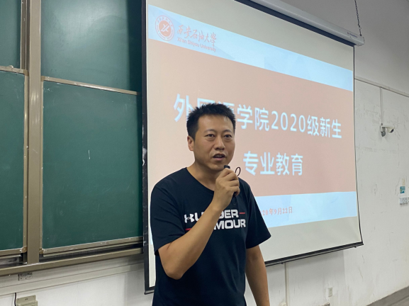 9月22日晚,外國語學院專業(yè)教育專題報告會在鄠邑校區(qū)B221教室召開,黨委副書記王業(yè)青、副院長陳武、英語系主任鐘澤波、俄語系副主任李更偉和翻譯系主任高鵬鵬、學管辦主任張帆參加。報告會由學管辦主任張帆主持,學院2020級全學生參加聽取本次專題報告會。