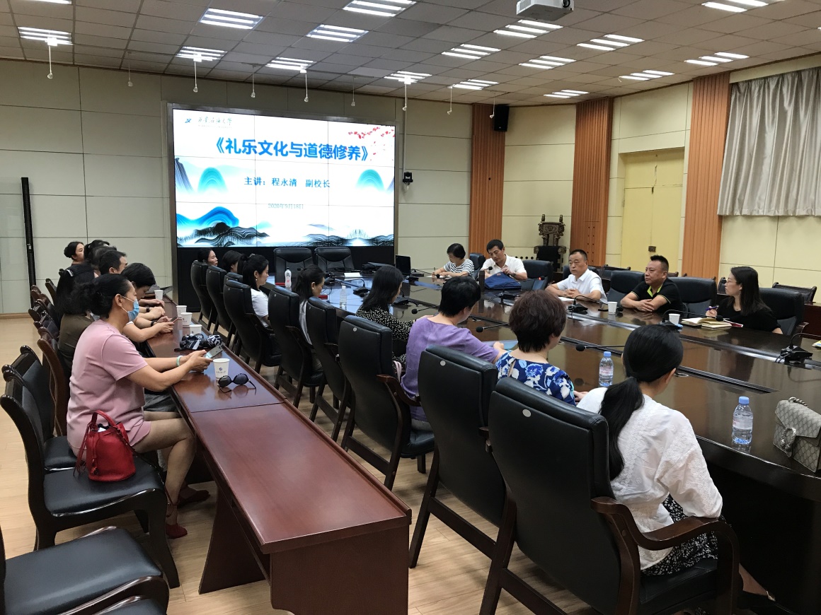 會(huì)上,副校長(zhǎng)程永清作了題為《禮樂(lè)文化與道德修養(yǎng)》的專(zhuān)題講座。程校長(zhǎng)分別從禮樂(lè)文化的內(nèi)涵、禮樂(lè)的作用和重要的意義以及道德的概念和提高修養(yǎng)的方法和途徑等方面對(duì)禮樂(lè)文化、禮樂(lè)與道德之間的關(guān)系進(jìn)行了深刻詳細(xì)的解讀。程校長(zhǎng)提出:一方面要加強(qiáng)學(xué)習(xí),把學(xué)習(xí)作為一種追求、愛(ài)好和健康的生活方式,做到好學(xué)樂(lè)學(xué);另一方面要以革新的姿態(tài)、發(fā)展的眼光,及時(shí)更新知識(shí)儲(chǔ)備,積極關(guān)注社會(huì)現(xiàn)實(shí),真正做到與時(shí)俱進(jìn)。