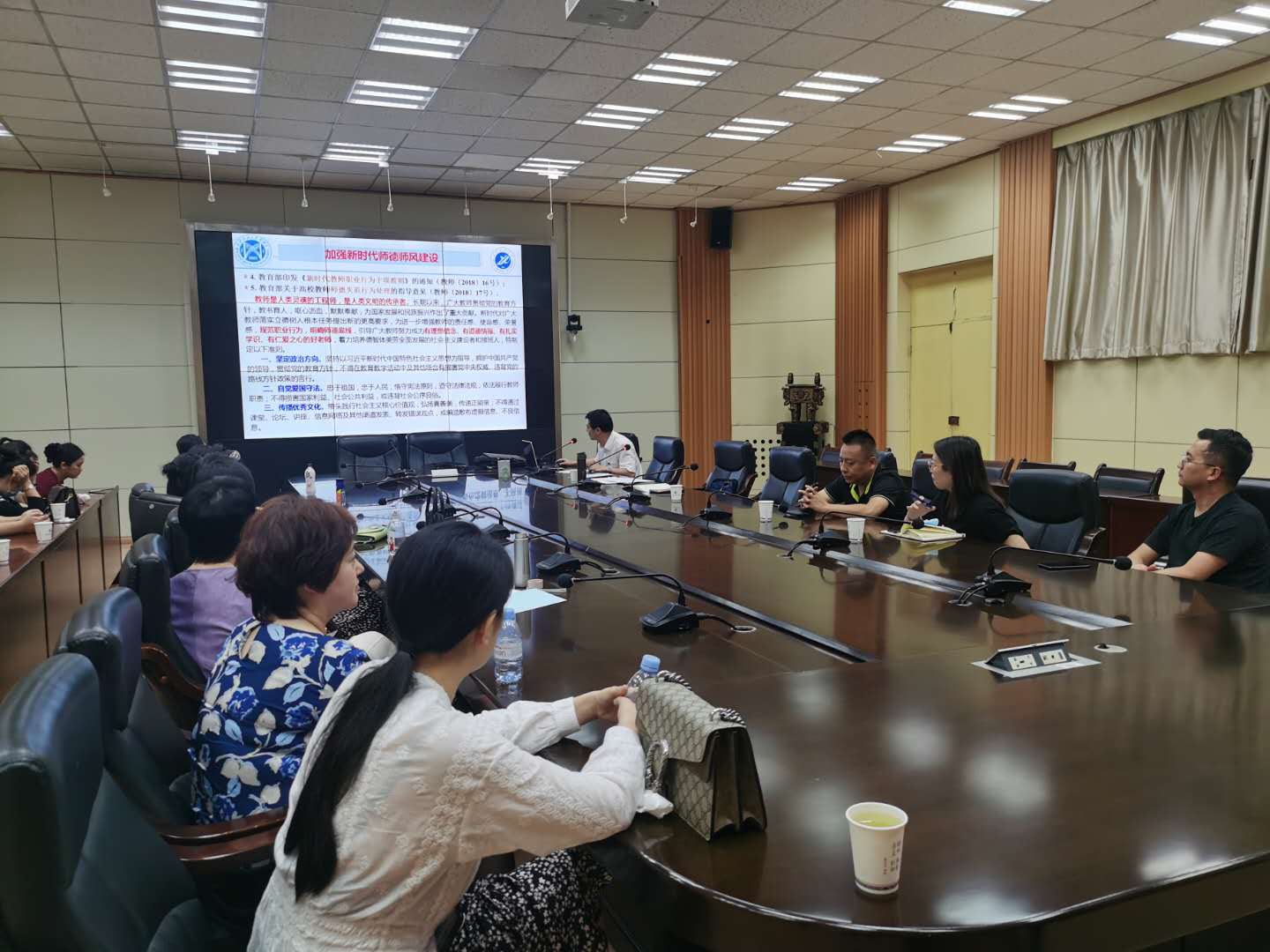 孟書(shū)記領(lǐng)學(xué)了《中華人民共和國(guó)教師法(2009年修正)》《關(guān)于加強(qiáng)和改進(jìn)新時(shí)代師德師風(fēng)建設(shè)的意見(jiàn)》的通知(教師〔2019〕10號(hào))》《新時(shí)代愛(ài)國(guó)主義教育實(shí)施綱要》等文件精神。孟書(shū)記強(qiáng)調(diào),希望大家不忘育人初心,牢記教師使命,增強(qiáng)為黨育人、為國(guó)育才的思想自覺(jué)和行動(dòng)自覺(jué),從自身做起,推動(dòng)系教風(fēng)學(xué)風(fēng)的發(fā)展,培養(yǎng)出更多合格的應(yīng)用型人才。