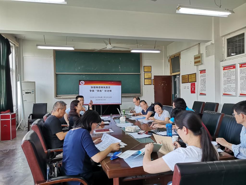 9月15日下午,馬克思主義學(xué)院形勢(shì)與政策教研室在雁塔校區(qū)1號(hào)樓818召開新學(xué)期集體備課會(huì)。學(xué)院黨總支書記李淵、副院長(zhǎng)張海濤、以及全體任課教師參加本次會(huì)議,會(huì)議由教研室主任馬芳平主持。