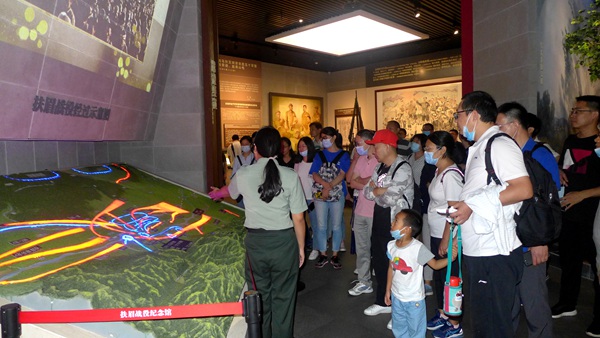 通過豐富真實的戰(zhàn)役歷史資料和講解員的系統(tǒng)介紹,配合聲、光、電等高科技,大家的腦海中似乎又重現(xiàn)了人民解放軍英勇戰(zhàn)斗的場面,尤其是紀念館陳列的戰(zhàn)旗、錦旗、獎章以及繳獲敵人的部分武器和報話器材等遺物,如二兵團四軍十師師長劉懋功、31團團長王學禮、營長馬成林用過的望遠鏡,戰(zhàn)斗英雄李珍吹過的軍號,于建軍烈士曾經用過的硯臺,張遵吉烈士的家書,武德彪等烈士用過的圖章,戰(zhàn)斗英雄張福來、李錫貴的立功證書和用過的軍毯、穿過的軍鞋等,讓大家更加深刻地體會到了革命戰(zhàn)爭年代解放軍戰(zhàn)士的英雄氣概和革命擔當,體會到了黨的戰(zhàn)略方針的英明、革命戰(zhàn)爭年代的艱辛和今天大好局面與幸福生活的來之不易。