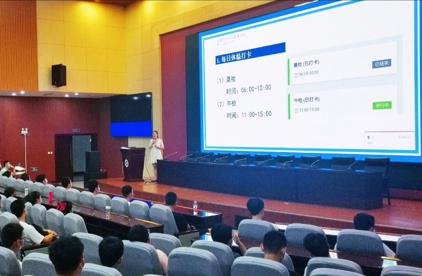 本次大會從嚴(yán)格健康監(jiān)測管理、嚴(yán)格校園出入管理和大學(xué)的意義三方面展開。其中嚴(yán)格健康監(jiān)測管理要求學(xué)生按時準(zhǔn)確完成每天晨、午檢打卡,如遇同學(xué)有發(fā)熱癥狀應(yīng)第一時間聯(lián)系輔導(dǎo)員老師并及時就醫(yī);嚴(yán)格校園出入管理要求學(xué)生確因特殊原因需要外出的,須在我在校園管理平臺上提交相關(guān)證明材料辦理請假手續(xù)。大會后半部分圍繞大學(xué)對普通人的意義展開,沈軒羽老師告誡同學(xué)們,大學(xué)是人生的跳板,要想順利步入廣闊天地,就得好好利用大學(xué)這四年,并在日常的學(xué)習(xí)與生活中為自己確立明確目標(biāo),要學(xué)會時間管理,做自己的時間管理大師。假期線上自由的學(xué)習(xí)時光已經(jīng)過去,沈老師希望同學(xué)們能夠反思過去,展望未來,端正姿態(tài)來迎接余下的大學(xué)生活,在多年后回顧大學(xué)生活時,不悔當(dāng)初。
