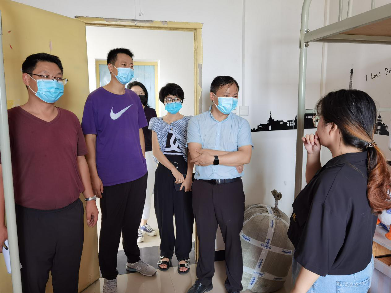 走訪過程中,學(xué)院領(lǐng)導(dǎo)與同學(xué)們親切交流,詢問學(xué)生疫情期間在家學(xué)習(xí)生活情況,了解學(xué)生返校行程中的防護措施,聽取同學(xué)們對返校后學(xué)習(xí)需求,叮囑學(xué)生們要嚴(yán)格執(zhí)行學(xué)校疫情防控規(guī)定要求,切實做好疫情常態(tài)化下的學(xué)生生活安排。領(lǐng)導(dǎo)們對學(xué)生返校后提出了幾點要求:一是每一名學(xué)生返校后務(wù)必做好晨檢午檢填報工作,嚴(yán)格遵守學(xué)校疫情期間的各項規(guī)章制度;二是要求同學(xué)們加強體育鍛煉,注意錯峰用餐,做好個人防護,不串宿舍,不串門;三是切實認(rèn)識到疫情常態(tài)化下的學(xué)習(xí)生活環(huán)境變化,明確學(xué)習(xí)、就業(yè)目標(biāo),早做準(zhǔn)備,提前安排,精心謀劃好自己的大學(xué)生活;四是嚴(yán)格執(zhí)行學(xué)校宿舍管理規(guī)定,提高安全意識,勤通風(fēng),常洗手,少聚集做好個人防護,積極配合學(xué)校做好宿舍消殺工作。