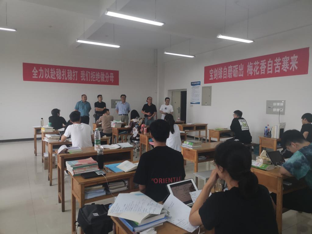 學(xué)生處處長趙健、校黨委組織部副部長王亮、學(xué)生處副處長龐秉謙先后到機(jī)械工程學(xué)院、電子工程學(xué)院學(xué)生考研自習(xí)室慰問考研學(xué)生,機(jī)械工程學(xué)院黨委書記田黨宏、黨委副書記劉笛,電子工程學(xué)院黨委副書記畢軼慧陪同。在學(xué)生考研自習(xí)室內(nèi),趙健處長表達(dá)了學(xué)校對全體備戰(zhàn)考研學(xué)生不畏酷暑堅持留校學(xué)習(xí)的關(guān)心和鼓勵。他表示,考研是一個人成長成才的重要途徑,同學(xué)們只要明確目標(biāo)、堅定信念,在良好的學(xué)習(xí)環(huán)境中勤奮鉆研、持之以恒,就一定能夠考取自己理想的目標(biāo)院校。學(xué)校將盡力解決同學(xué)們學(xué)習(xí)生活中遇到的困難,為同學(xué)們提供舒適的學(xué)習(xí)場所。他建議同學(xué)們注意勞逸結(jié)合,學(xué)會自我調(diào)節(jié)壓力,適度放松,尤其是在疫情防控期間注意加強自我保護(hù)。在學(xué)習(xí)過程中要多向老師求教,多與同學(xué)溝通,分享交流學(xué)習(xí)方法及學(xué)習(xí)心得,互幫互助、攜手共進(jìn)。他要求同學(xué)們要堅定信心、穩(wěn)扎穩(wěn)打、循序漸進(jìn),以積極向上的心態(tài)高效率學(xué)習(xí),努力實現(xiàn)既定目標(biāo)。
