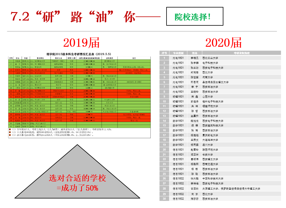 第二、科學(xué)定位,合理擇校。馬書記對比了理學(xué)院近些年考研數(shù)據(jù),勉勵大家一定要科學(xué)定位,合理擇校??v觀歷年考研錄取數(shù)據(jù),很多同學(xué)成績非常好,反而考研失利,原因就是沒有對自己有一個科學(xué)定位,目標(biāo)院校過高或不符合自身實際。因此,同學(xué)們在備考選擇學(xué)校時就要實事求是,對自己有一個科學(xué)合理的定位,選擇學(xué)校一定要符合自身實際,這樣在整個考研備考過程中也會順利和得心應(yīng)手得多。