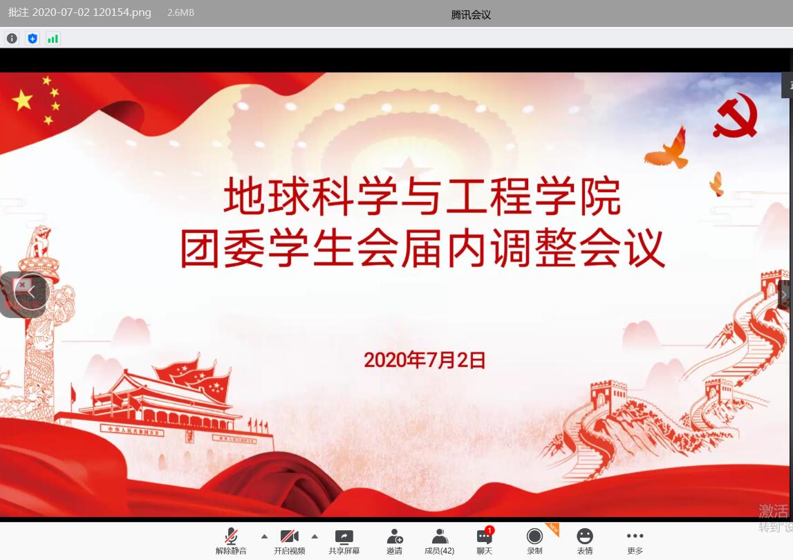 2020年7月2日上午,地球科學(xué)與工程學(xué)院團(tuán)委學(xué)生會(huì)屆內(nèi)調(diào)整會(huì)議通過(guò)騰訊會(huì)議舉行。院團(tuán)委書(shū)記邱嶺、組織員張陽(yáng)、輔導(dǎo)員杜蕾及團(tuán)委學(xué)生會(huì)全體干部參加會(huì)議,會(huì)議由學(xué)生會(huì)主席團(tuán)成員李富康主持。