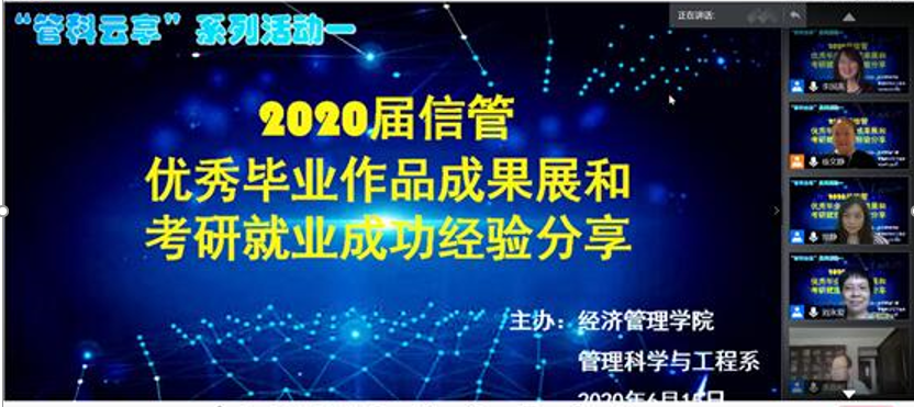 為了豐富“停課不停學(xué)”的線上教學(xué)活動(dòng),2020年6月15日下午14:30,經(jīng)濟(jì)管理學(xué)院管理科學(xué)與工程系信息管理與信息系統(tǒng)專業(yè)利用騰訊會(huì)議開(kāi)展了一次師生共享的成果交流會(huì)。參會(huì)人員不僅包括學(xué)院的老師、在讀本科生,還特別邀請(qǐng)了已經(jīng)畢業(yè)的學(xué)生分享成功經(jīng)驗(yàn),參會(huì)人數(shù)達(dá)200多人。