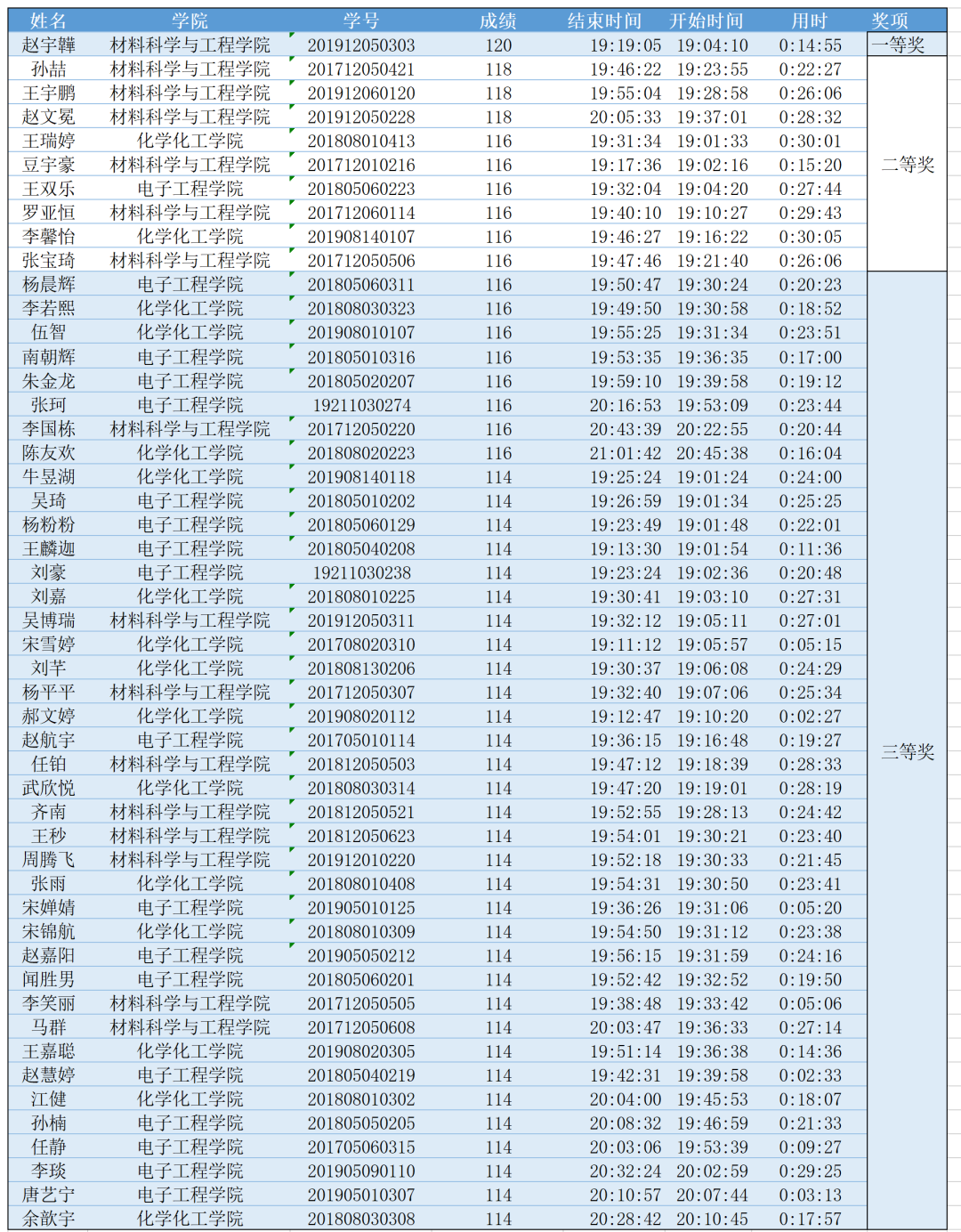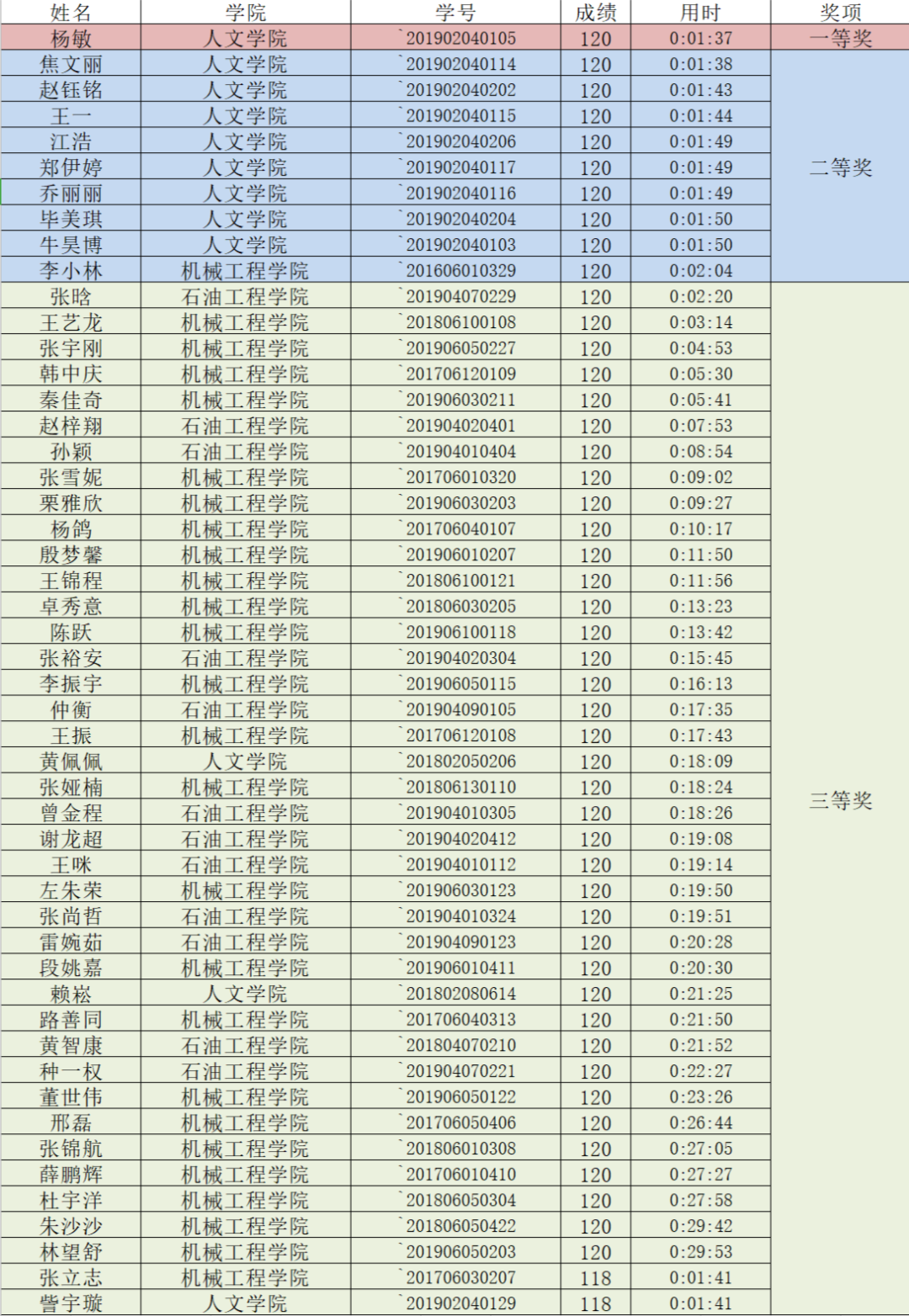 第一期獲獎(jiǎng)學(xué)生名單