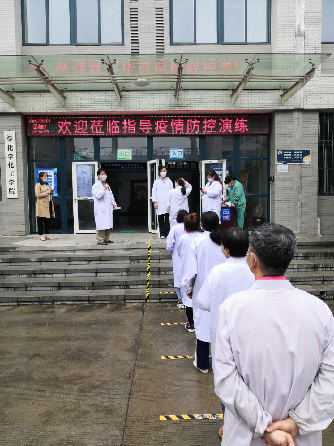 本次演練持續(xù)近兩個(gè)小時(shí),整個(gè)演練過(guò)程有條不紊,各個(gè)環(huán)節(jié)緊密銜接,異常情況處置高效得當(dāng),全體實(shí)驗(yàn)教師及樓管共計(jì)15名教職工分工明確、反應(yīng)迅速、協(xié)調(diào)有序,覆蓋了實(shí)驗(yàn)樓入口體溫檢測(cè)及體溫異常學(xué)生處置、實(shí)驗(yàn)樓內(nèi)通道管理、實(shí)驗(yàn)教學(xué)流程管理、實(shí)驗(yàn)過(guò)程中學(xué)生健康檢測(cè)異常等多個(gè)場(chǎng)景的模擬演練。在各位老師的認(rèn)真配合下,按照預(yù)定方案圓滿完成了此次應(yīng)急演練任務(wù),提高了疫情防控水平和應(yīng)對(duì)突發(fā)疫情能力。演練結(jié)束后, 實(shí)驗(yàn)室管理處就演練過(guò)程、規(guī)范文件、通道管理、地面標(biāo)識(shí)、錯(cuò)峰錯(cuò)時(shí)等方面提出了寶貴意見(jiàn)。
