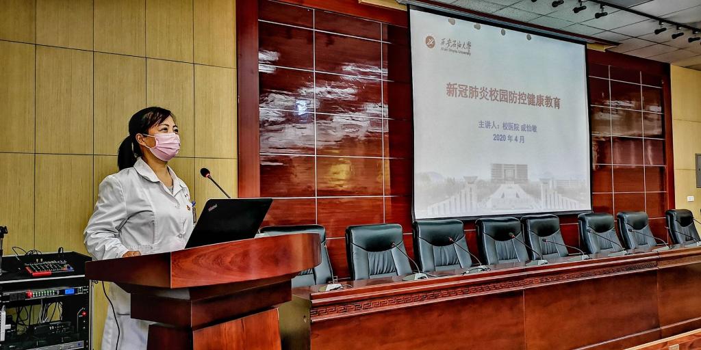 2020年4月19日,陜西省教育廳發(fā)布了“陜西省教育廳關于做好陜西高校2020年春季學期開學工作的通知(陜教明電〔2020〕3號)”。就全省高校2020年春季學期開學工作明確4月27日起,各高??梢蚤_始安排學生錯時錯峰返校,具體返校時間由各高校統(tǒng)籌安排。為做好學生返校工作準備,校醫(yī)院立即嚴格執(zhí)行教育廳及學校要求,認真做好組織統(tǒng)籌,不斷拓展健康教育方式,扎實開展開學前后新冠肺炎疫情防控宣傳教育各項工作。2020年4月24日,校醫(yī)院成怡敏副主任醫(yī)師在雁塔校區(qū)第五會議室為全體后勤人員進行了題為《新冠肺炎校園防控健康教育》健康講座活動。