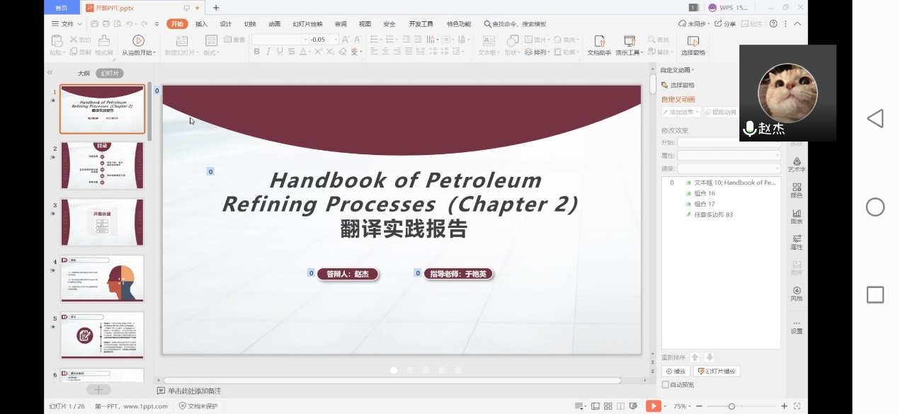 每位學(xué)生以PPT形式展示匯報(bào)開題內(nèi)容并進(jìn)行答辯。開題學(xué)生向答辯老師就選題意義、文獻(xiàn)綜述、主要內(nèi)容、創(chuàng)新點(diǎn)及進(jìn)度安排等進(jìn)行了陳述,并回答老師的提問。答辯小組對(duì)各位研究生的開題報(bào)告分別進(jìn)行了有針對(duì)性的現(xiàn)場(chǎng)點(diǎn)評(píng),指出了存在的問題和修改意見,并要求同學(xué)們根據(jù)意見及建議認(rèn)真地對(duì)選題及內(nèi)容進(jìn)行調(diào)整和修改。