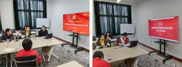 大學(xué)外語(yǔ)教學(xué)一部黨支部書記葛麗、大學(xué)外語(yǔ)教學(xué)二部黨支部副書記畢瑩、英語(yǔ)系教師黨支部書記陳武、俄語(yǔ)系教師黨支部書記孫婷、翻譯系黨支部書記高鵬鵬和英語(yǔ)系學(xué)生黨支部書記張帆圍繞學(xué)校黨支部工作標(biāo)準(zhǔn)和評(píng)價(jià)指標(biāo)體系,聚焦“七個(gè)有力”,重點(diǎn)就黨支部“不忘初心、牢記使命”主題教育、“兩學(xué)一做”學(xué)習(xí)教育常態(tài)化制度化、 “三會(huì)一課”、在教學(xué)科研工作戰(zhàn)斗堡壘作用和黨員先鋒模范作用發(fā)揮情況等進(jìn)行了匯報(bào)。