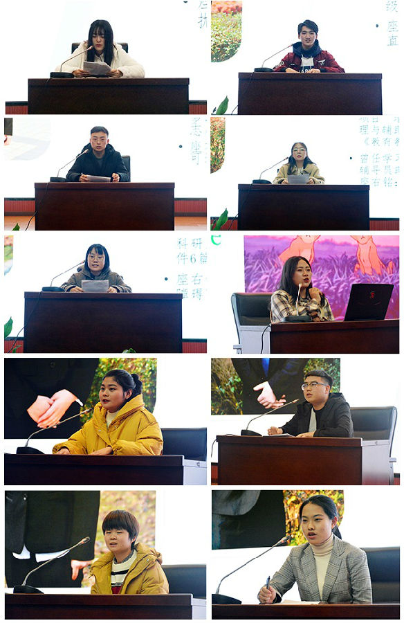 地球科學(xué)與工程學(xué)院的孫海萱同學(xué)從勤奮和敢于犯錯(cuò)兩個(gè)方面分享了經(jīng)驗(yàn);來(lái)自化學(xué)化工學(xué)院的李政同學(xué)以風(fēng)趣幽默的語(yǔ)風(fēng)向大家展示了一個(gè)執(zhí)著的追夢(mèng)者形象;機(jī)械工程學(xué)院的羅應(yīng)寧同學(xué)強(qiáng)調(diào)了前期努力的重要性,希望每個(gè)人都可以探索出自己的成長(zhǎng)道路;材料科學(xué)與工程學(xué)院的韓臘同學(xué)細(xì)致地分享了學(xué)習(xí)方面的注意事項(xiàng);人文學(xué)院的常彭朵同學(xué)強(qiáng)調(diào)要永遠(yuǎn)保持好奇心和旺盛的求知欲,學(xué)會(huì)熱愛(ài)所從事的領(lǐng)域;石油工程學(xué)院的游琰真同學(xué)從日常學(xué)習(xí)、考研復(fù)習(xí)、業(yè)余愛(ài)好三個(gè)方面分享了自己的學(xué)習(xí)方法;電子工程學(xué)院的向歡同學(xué)強(qiáng)調(diào)了階段知識(shí)積累的重要性,并強(qiáng)調(diào)要學(xué)好基礎(chǔ)知識(shí)、合理安排學(xué)習(xí)時(shí)間;計(jì)算機(jī)學(xué)院的閆浩同學(xué)從馬克思主義原理出發(fā),談到了馬克思主義對(duì)其產(chǎn)生的深深影響;理學(xué)院的黃新語(yǔ)同學(xué)堅(jiān)信優(yōu)秀的成績(jī)來(lái)源于平時(shí)的積累和沉淀,并從興趣、專注、方法、效率四個(gè)方面分享了學(xué)習(xí)經(jīng)驗(yàn);經(jīng)濟(jì)管理學(xué)院的馬旻玥同學(xué)強(qiáng)調(diào)了自學(xué)能力的重要性。