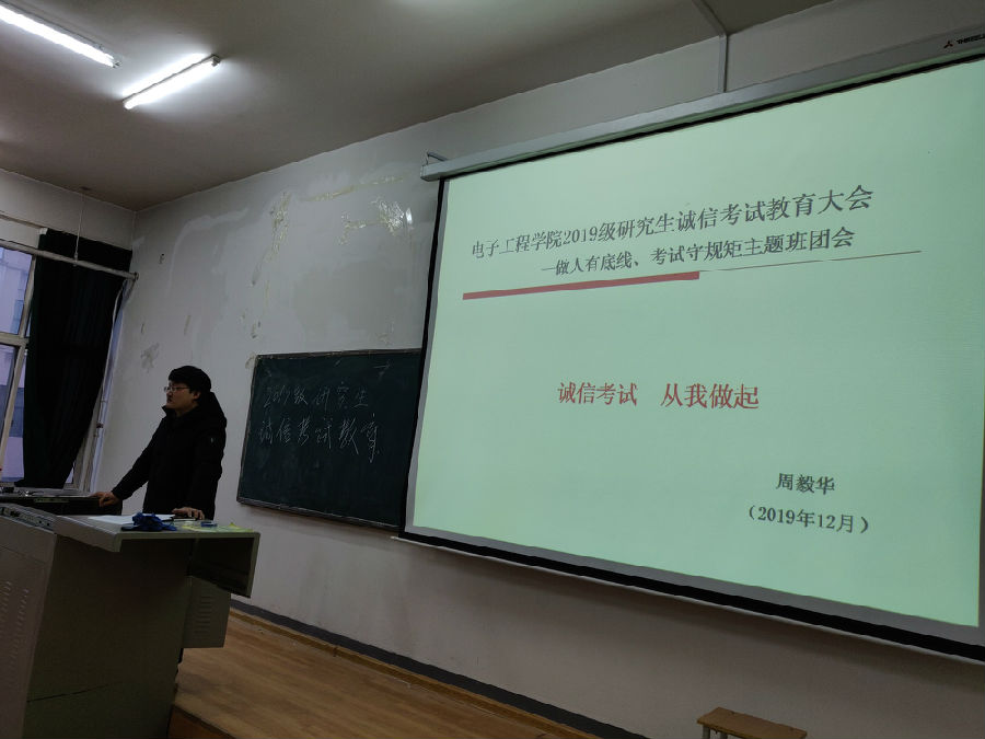 為進(jìn)一步增強(qiáng)研究生誠信考試意識,扎實(shí)推進(jìn)研究生誠信考試教育及學(xué)風(fēng)提升工作,12月25日下午,電子工程學(xué)院在鄠邑校區(qū)C3實(shí)驗(yàn)樓419教室舉行研究生誠信考試教育大會(huì),學(xué)生管理辦公室主任周毅華老師主持會(huì)議,2019級全體研究生參加會(huì)議。