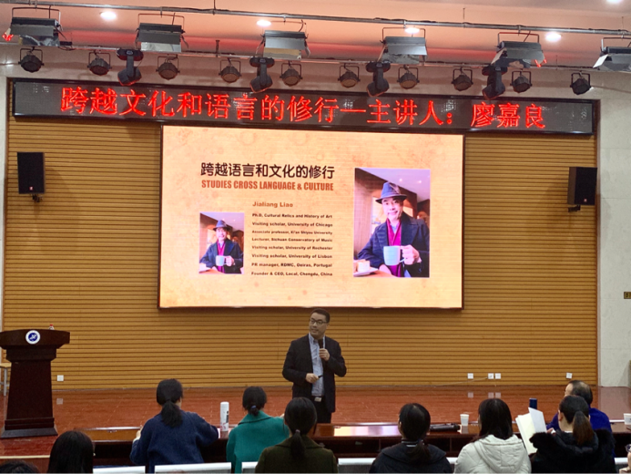 2019年11月26日下午2:00,人文學(xué)院"學(xué)術(shù)誠(chéng)信活動(dòng)月"系列講座暨第13期學(xué)術(shù)沙龍?jiān)卩傄匦^(qū)人文經(jīng)管樓118如期舉行。本次講座的主講人廖嘉良博士,他為漢語國(guó)際教育專業(yè)研究生做了題為“跨越文化的語言和修行”的精彩演講。講座由黃慶豐副院長(zhǎng)主持。