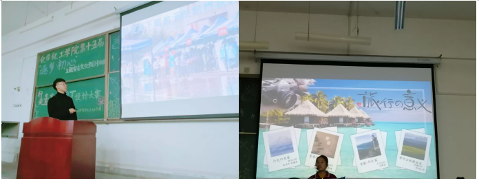 我們都聽過這樣一句話:“生活不止眼前的茍且,還有詩和遠方的田野”。 作為學(xué)生,學(xué)校、課堂并不是我們唯一的營地,有那么一些同學(xué),他們會在閑暇時光和家人或是好友相約出門走一走。今天,在化學(xué)化工學(xué)院第十五屆“逐夢?初心”主題宿舍文化節(jié)里,秘書部舉辦了一場“行走青春”PPT大賽來讓同學(xué)們展示自己旅途中遇到的美景。