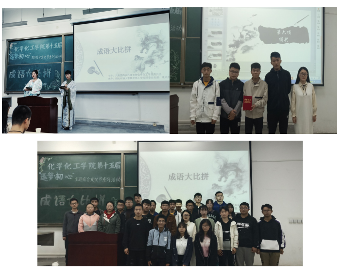 奮進逐夢西石大,堅守初心化工人,為慶祝祖國成立七十周年,改革逐夢取得舉世矚目的成果,深入學(xué)習(xí)貫徹習(xí)近平新時代中國特色社會主義思想和黨的十九大精神,傳承“愛國、進步、民主、科學(xué)”的五四愛國主義精神,激勵引領(lǐng)廣大青年學(xué)子大力弘揚以愛國主義為核心的偉大民族精神,激勵西石大化學(xué)化工學(xué)院學(xué)子奮力逐夢,堅守初心,同時,祝愿化學(xué)化工學(xué)院勇攀高峰,再創(chuàng)輝煌,化學(xué)化工學(xué)院舉辦以“逐夢·初心”為主題的宿舍文化節(jié),先后舉辦了“金秋杯”辯論賽、“英語風(fēng)采大賽”、“成語大比拼”、“”我在未來等你”等系列活動。