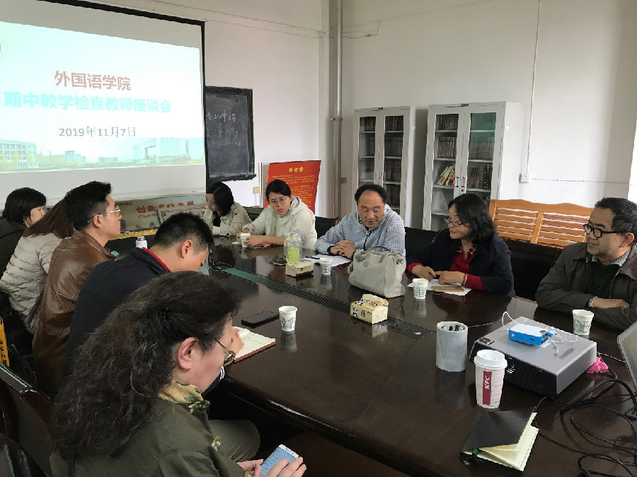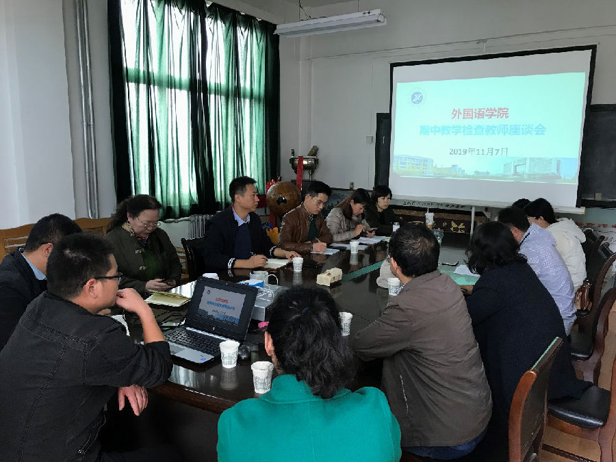 外國語學院于2019年11月7日下午在雁塔校區(qū)一號教學樓701會議室舉行了期中教學檢查教師座談會。外國語學院教學副院長陳武主持召開了此次會議,校督導張倩霞、外國語學院英語系主任鐘澤波、翻譯系副主任秦艷霞、俄語系副主任李更偉、公共外語第一教學部主任葛麗、公共外語第二教學部主任彭健、教學秘書劉喜軍、李洋甜及外國語學院各系部教師代表參加了此次座談會。
