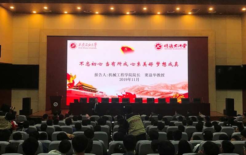 11月4日晚,由校團委主辦,機械工程學(xué)院團委、學(xué)生會承辦的第六十三期明德大講堂在鄠邑校區(qū)圖書館弘石學(xué)術(shù)報告廳成功舉辦。機械工程學(xué)院院長竇益華教授應(yīng)邀作了題為《不忘初心 當(dāng)有所成 心系美好 夢想成真》的講座,鄠邑校區(qū)400余名師生聽取了講座。講座由機械工程學(xué)院黨委副書記劉笛主持。