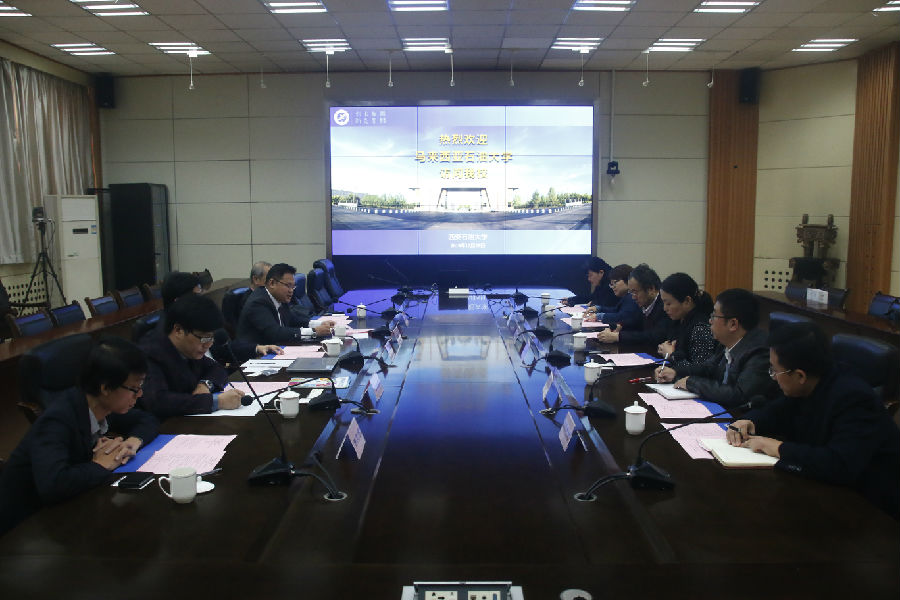 國際交流與合作處處長閆蘇莉代表學校對代表團來訪表示歡迎,并簡要介紹了學校的基本情況。她表示,學校高度重視同馬方的交流合作,并期待盡快簽訂兩校合作框架協(xié)議,包括在石油、地質(zhì)、電工、計算機等學科積極開展師生交流互訪、科研合作以及共建“一帶一路交流中心”等方面內(nèi)容,全面推進兩校合作進程。