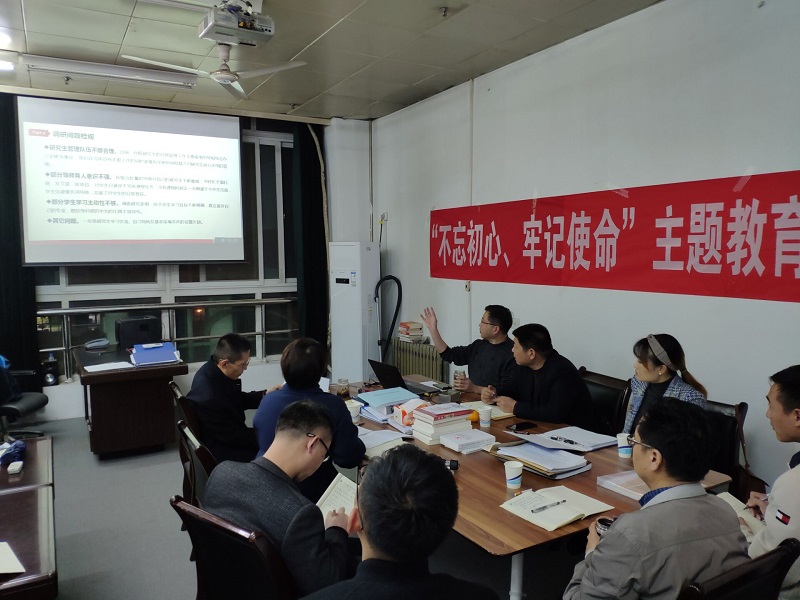 首先,學(xué)院黨委書記蔡建文同志向督導(dǎo)組成員介紹學(xué)院“不忘初心、牢記使命”主題教育工作進(jìn)展情況。緊接著,學(xué)院處級(jí)干部立足初心使命,分別圍繞研究生管理、年輕博士教師“助推計(jì)劃”、本科學(xué)生黨員考評(píng)與管理和本科專業(yè)認(rèn)證理念落實(shí)等方面展開交流。交流人員在成果分享和相互啟發(fā)中拓寬思路,深入思考和謀劃學(xué)院高質(zhì)量發(fā)展的現(xiàn)實(shí)路徑。