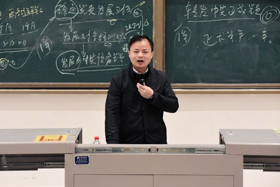 學(xué)院黨委書記蔡強(qiáng)作了《中國(guó)共產(chǎn)黨的組織體系和組織原則》輔導(dǎo)培訓(xùn)。他首先祝賀同學(xué)們通過(guò)組織的篩選,從政治上、學(xué)習(xí)上、生活上提出了具體要求,他要求各位同學(xué)在大學(xué)期間要牢固樹(shù)立理想信念,努力提高學(xué)習(xí)成績(jī),主動(dòng)擔(dān)當(dāng)責(zé)任和使命,積極服務(wù)同學(xué)學(xué)習(xí)生活。