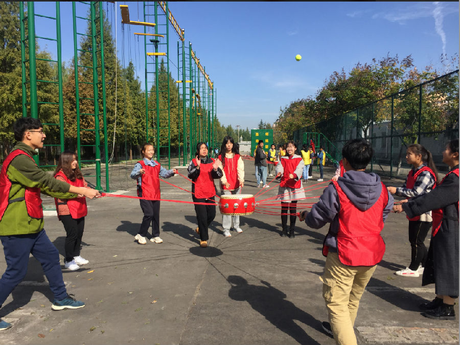 團隊訓練前,舉行了簡單的分組和開班儀式。拓展訓練期間,在教練的指導下分別進行了團隊文化建設、高空項目、同心鼓、達芬奇密碼、穿越生死線等多個項目訓練。同學們挑戰(zhàn)自我,精誠協(xié)作,由最初的無法凝聚到彼此的默契配合,隊友間的團隊意識逐漸增強,團隊凝聚力和執(zhí)行力得到了極大地提高。