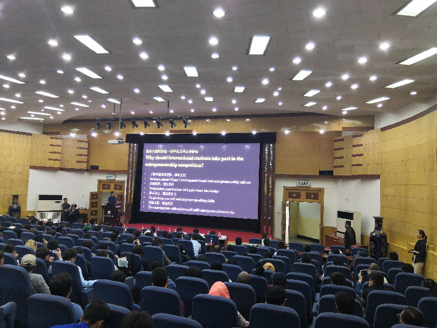 會(huì)上,大賽特聘導(dǎo)師蔡鵬做了主題為“一帶一路”留學(xué)生創(chuàng)業(yè)大賽認(rèn)知與準(zhǔn)備的宣講,從創(chuàng)業(yè)大賽是什么、為什么要舉辦創(chuàng)業(yè)大賽、通過創(chuàng)業(yè)大賽可以獲得什么等方面做了詳細(xì)解讀,讓留學(xué)生們對(duì)創(chuàng)業(yè)大賽有了更深刻的認(rèn)知;瑪納斯總經(jīng)理葉麗婭做了主題為“優(yōu)秀創(chuàng)業(yè)企業(yè)經(jīng)驗(yàn)分享”宣講,從瑪納斯進(jìn)出口貿(mào)易公司企業(yè)理念、發(fā)展過程、業(yè)務(wù)范圍、企業(yè)愿景等方面進(jìn)行分享,讓留學(xué)生對(duì)創(chuàng)新創(chuàng)業(yè)在實(shí)踐環(huán)節(jié)有了更深刻的認(rèn)識(shí);銀彈谷副總經(jīng)理李雄做了“創(chuàng)新創(chuàng)業(yè)服務(wù)介紹及留學(xué)生創(chuàng)業(yè)需求互動(dòng)”的演講,從企業(yè)孵化方面做了詳細(xì)解讀。